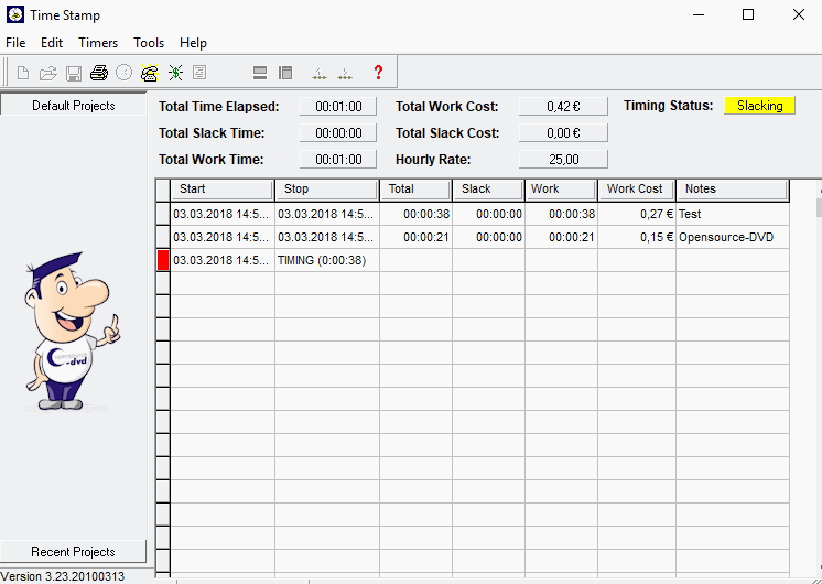 Sie suchen ein Programm, das Ihnen einen Überblick verschafft, wie hoch Ihr Zeitaufwand für ein Projekt ist? Time Stamp wurde zu diesem Zweck entwickelt; es kann mehrere Projekte verwalten, welche für einen schnellen Zugriff in der linken Bar aufgelistet werden und speichert nicht nur den Zeitaufwand, sondern bei Bedarf rechnet es diesen in einen Euro-Betrag um.
